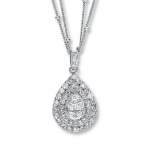 Round and baguette diamonds shine on a 10K yellow gold heart in this fabulous necklace for her. A white rhodium flash completes the look. With a total diamond weight of 1/2 carat, the pendant sways from an 18-inch cable chain that secures with a spring ring clasp.