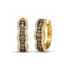 Crafted in gleaming 14K honey gold, these stunning earrings feature luxurious round chocolate diamonds surrounded by dazzling round vanilla diamonds. The earrings have a total diamond weight of 1 carat and are secured with a hinged back.