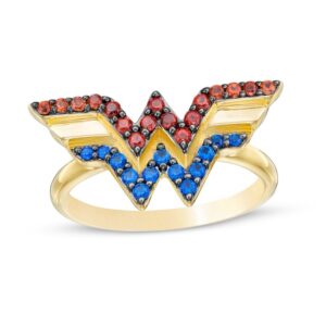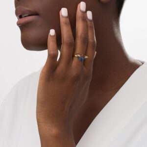 Blue Sapphire, Garnet and Diamond Tiara Ring in Sterling Silver and 10K Gold